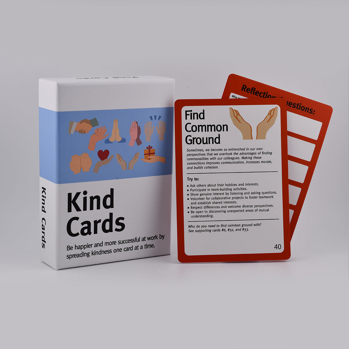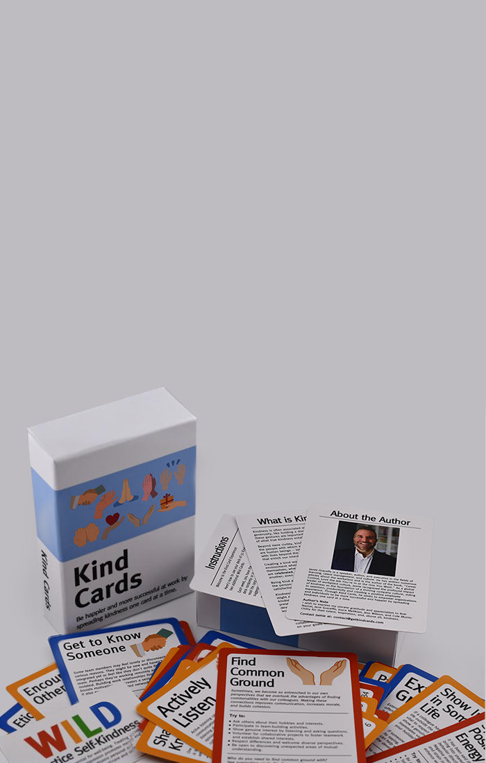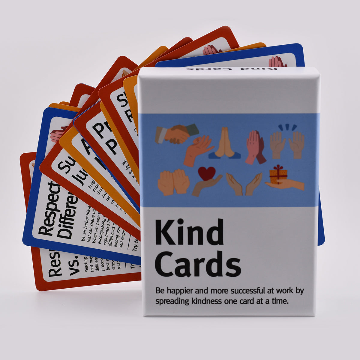 Kind Cards are thoughtfully designed for those who value empathy, connection, and kindness in the workplace. With 52 unique cards and multi-functional features, it’s perfect for building a culture of kindness, engagement, and personal growth.
